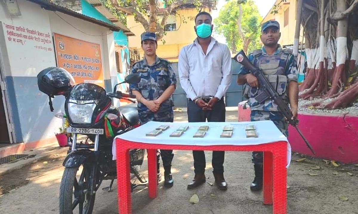 मोटरसाइकल चालक वीरगंज महानगरपालिका वडा नम्बर १७ अलौ निवासी २९ वर्षीय प्रदीप कुमार साहलाई नगदसहित नियन्त्रणमा लिई आवश्यक कारबाहीका लागि वीरगंज भन्सार कार्यालयमा बुझाइएको सशस्त्र प्रहरीले जनाएको छ ।