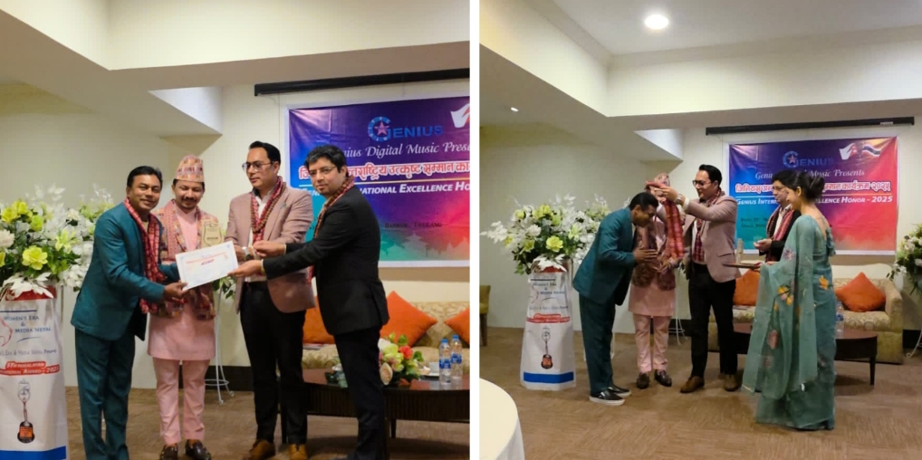 गायक तथा संगीतकार रामबाबु राउत जिनियस अन्तर्राष्ट्रिय उत्कृष्ट सम्मान पुरस्कारद्वारा सम्मानित