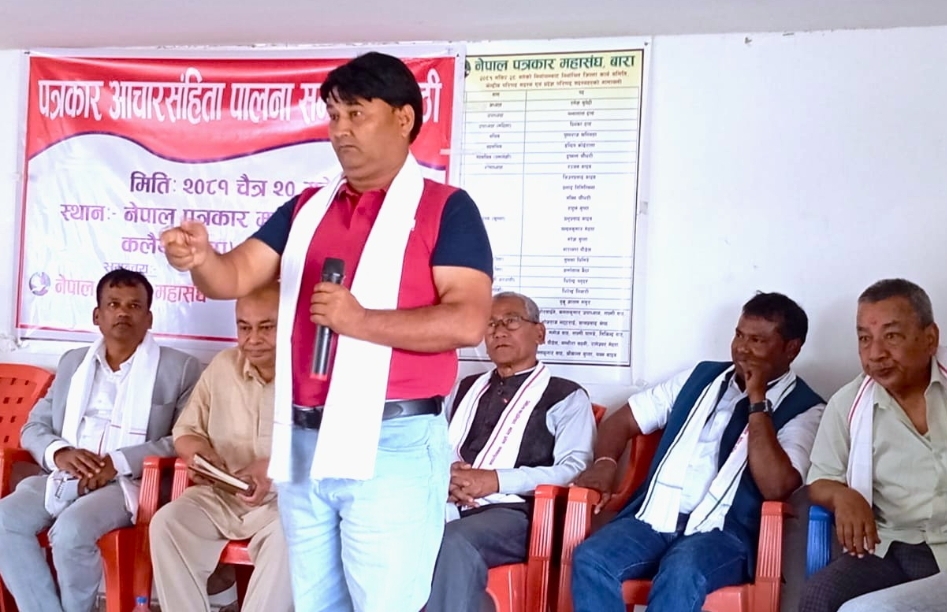 बाराको कलैयामा बुधबार पत्रकार आचारसंहिता पालना सम्बन्धी गोष्ठी कार्यक्रम सम्पन्न भएको छ । नेपाल पत्रकार महासंघको सभा हलमा सो कार्यक्रम सम्पन्न भएको हो ।
