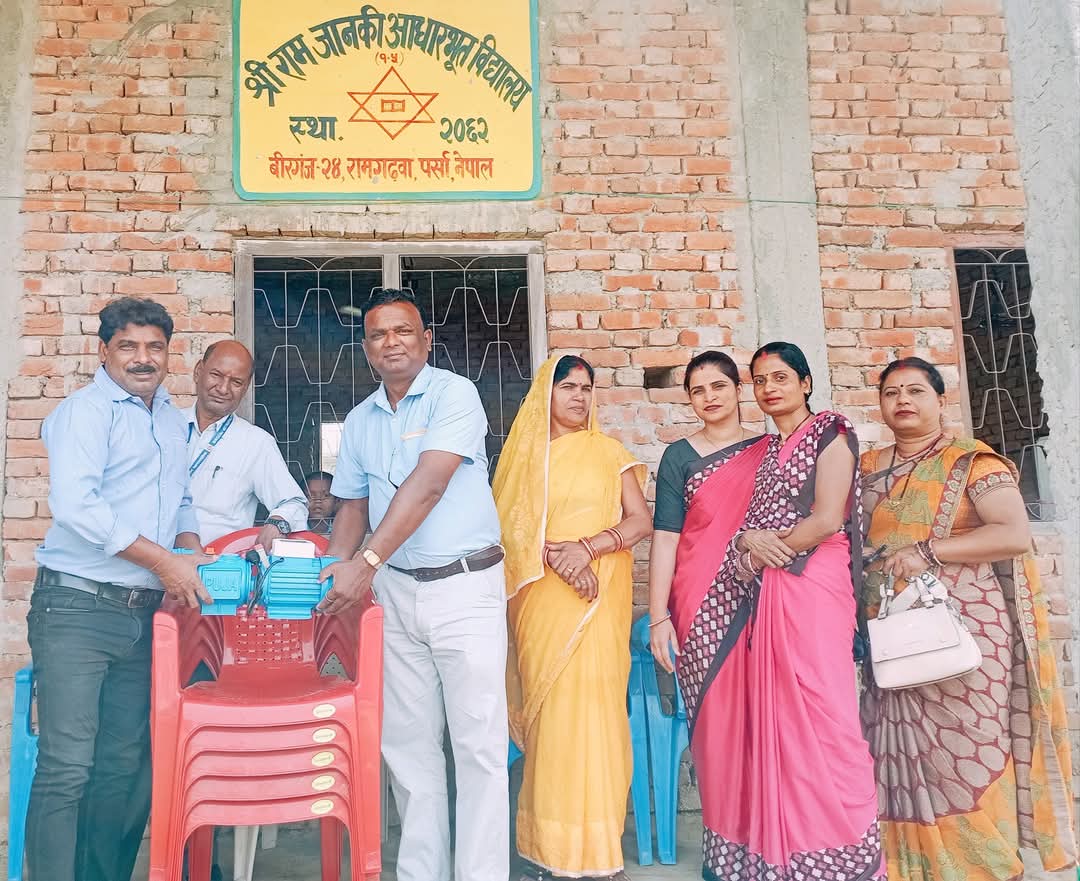 बिरगंज महानगरपालिका वडा नम्बर २४ रामगढवास्थित श्री रामजानकी आधारभूत विद्यालयलाई समाजसेवी वृजेश चौधरीले सामग्री सहयोग गरेका छन्।समाजसेवी चौधरीले विद्यालयलाई १ थान मोटर र ५ थान कुर्सी हस्तान्तरण गरेका हुन्। पर्सा, जगरनाथपुर वडा नम्बर ४ निवासी चौधरीले विद्यालयको शैक्षिक वातावरण सुधार्नका लागि उक्त सहयोग गरेका हुन्।