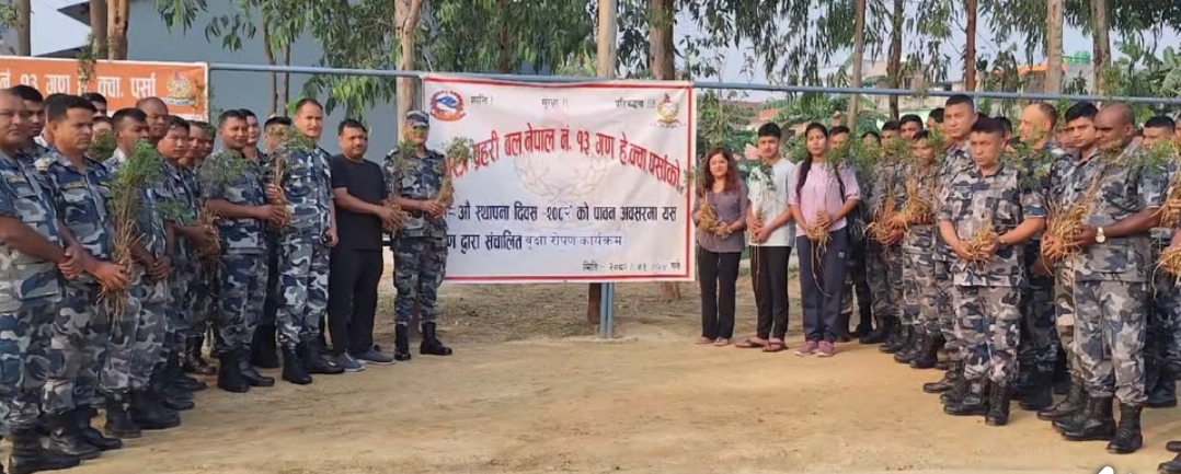 सशस्त्र प्रहरी बल नेपाल नं.१३ गण हे. क्वा. पर्साको १८ औँ स्थापना दिवश “२०८२” को शुभ अवसरमा बृहत वृक्षारोपण कार्यक्रम सम्पन्न भएको छ । बिरगंज महानगरपालिका स्थित सशस्त्र प्रहरी बल नेपाल नं.१३ गण हे. क्वा. पर्साको १८ औँ स्थापना दिवस एवं “२०८२” को शुभ अवसरमा सशस्त्र प्रहरी बल नेपाल नं.१३ गण हे. क्वा. पर्साका गणपती सशस्त्र प्रहरी उपरिक्षक राधेश्याम धिमालको अध्यक्षतामा सम्पन्न भएको छ।बिहिवार एक कार्यक्रमको आयोजना गरि उक्त बृहत वृक्षारोपण कार्यक्रम सम्पन्न गरेको हो।