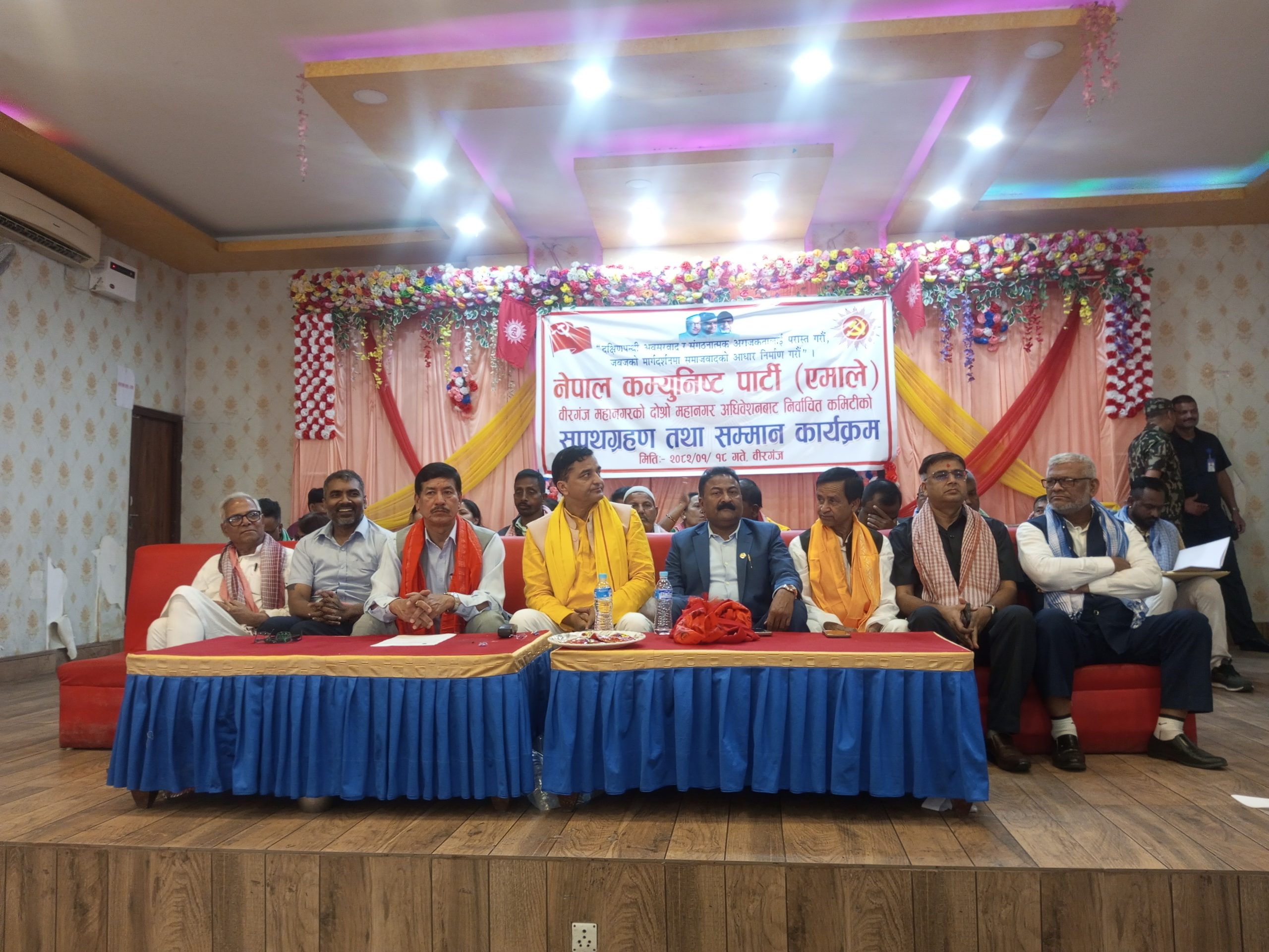 नेकपा एमाले वीरगञ्ज महानगर कमिटीको दोस्रो अधिवेशनबाट निर्वाचित पदाधिकारी तथा सदस्यहरूको सपथ ग्रहण तथा सम्मान कार्यक्रम आज एक भव्य समारोहबीच सम्पन्न भएको छ। वीरगञ्जको क्लासिक बैंक्वेटमा आयोजित कार्यक्रममा एमाले नेताहरू, संघीय र प्रदेश सरकारका मन्त्रीहरू, पत्रकार, समाजसेवी तथा शुभेच्छुकहरूको उल्लेखनीय उपस्थिति थियो।