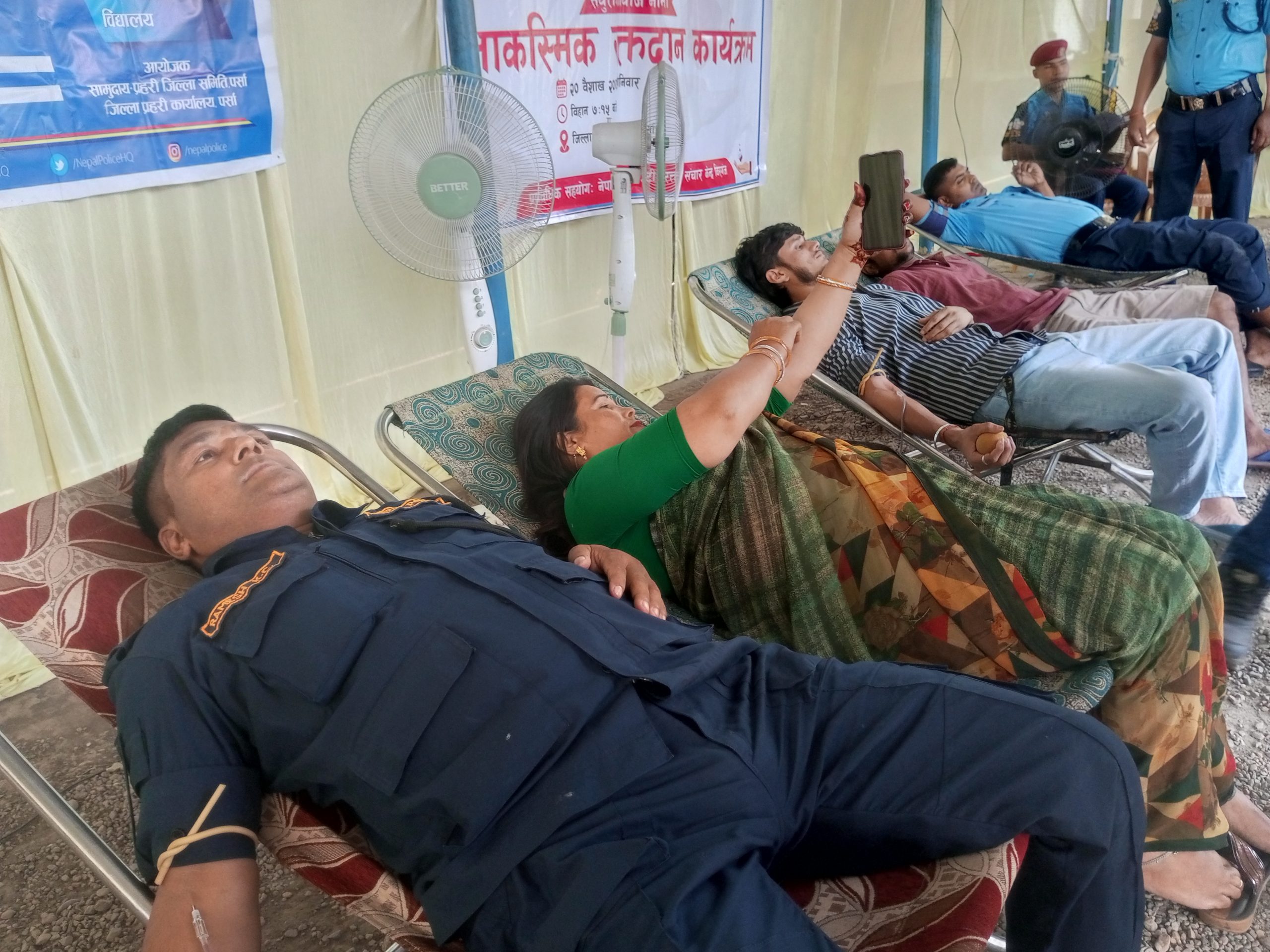 समुदाय–प्रहरी साझेदारी कार्यक्रम अन्तर्गत भोलेन्टियर समूह बीरगंज र जिल्ला प्रहरी कार्यालय, पर्साको संयुक्त आयोजनामा नेपाल रेडक्रस सोसाइटी, रक्तसञ्चार केन्द्र पर्सामा आकस्मिक रक्तदान कार्यक्रम सम्पन्न भएको छ।