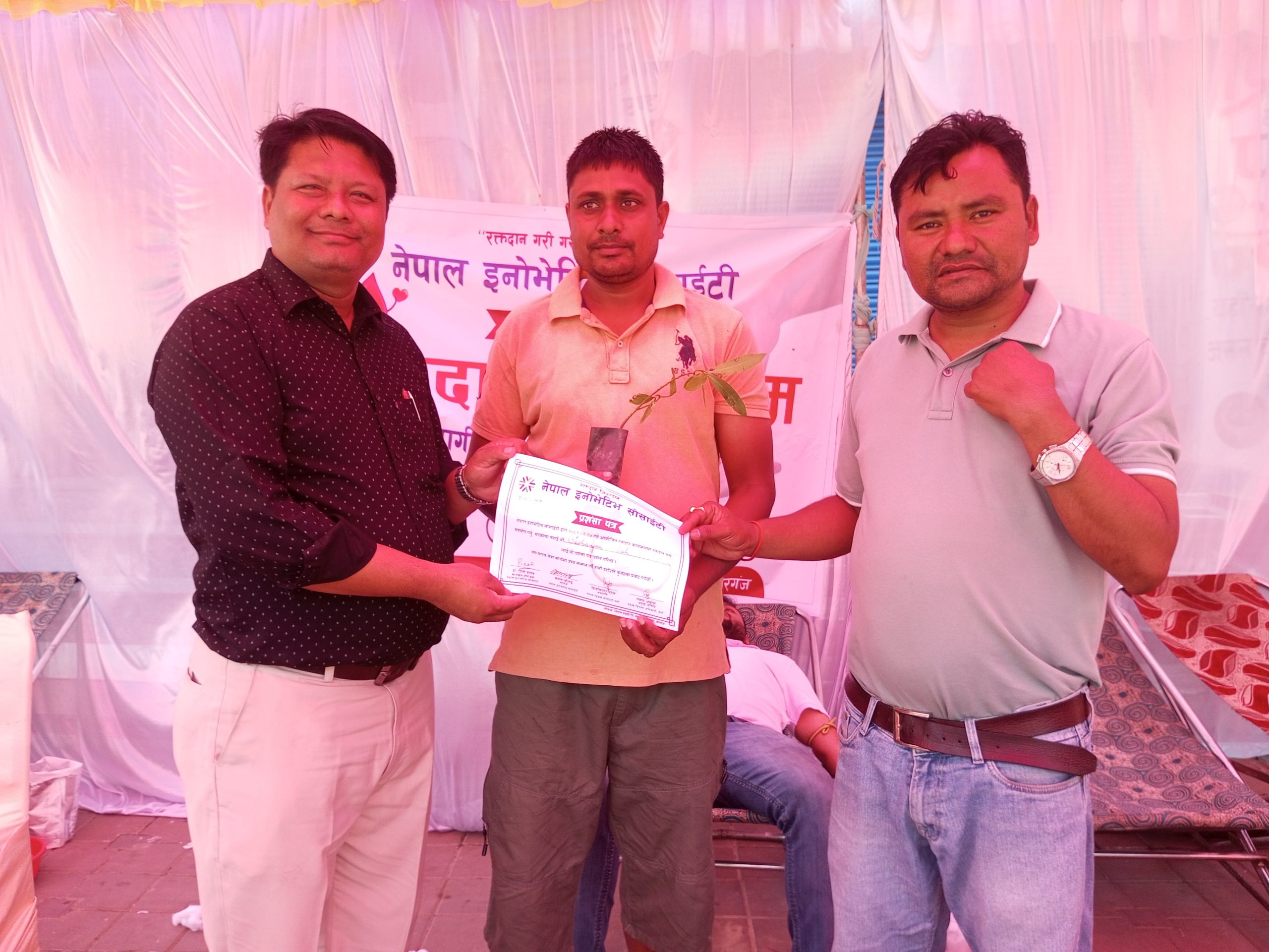 नेपाल इनोभेटिभ सोसाइटी पर्साको आयोजनामा “रक्तदान गरी गरौं जीवनदान” मूल मन्त्रका साथ शनिबार माईस्थान पार्क, वीरगंजमा एक खुला रक्तदान कार्यक्रम सम्पन्न भएको छ।