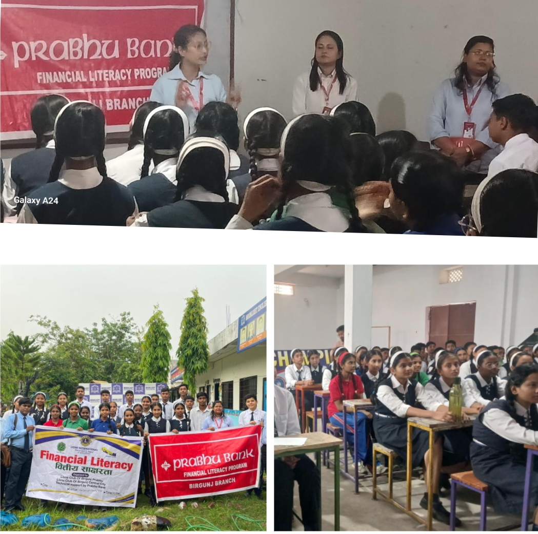 लायन्स क्लब बीरगंज सेंट्रल सिटी र लायन्स क्लब प्रभुको संयुक्त आयोजना तथा प्रभु बैंक आदर्शनगर शाखाको सहकार्यमा आयोजित वित्तीय साक्षरता कार्यक्रम बीरगंजको कुम्हालटाेलस्थित मूनलाइट स्कुलमा भव्यतापूर्वक सम्पन्न भएको छ।