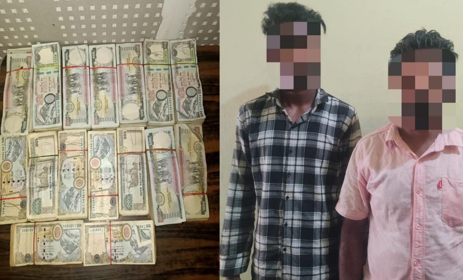 वीरगञ्ज महानगरपालिका वडा नं २१ स्थित परवानीपुर चौकमा मधेश प्रदेश ०३-०२९ प ४९७४ नम्बरको मोटरसाईकल चेक गर्दा उनीहरुको साथबाट कालो रंगको ब्यागभित्र लुकाइ छिपाई राखिएको नेपाली एक हजार दरका नोट ७ सय ७१ थान गरी रु ७ लाख ७१ हजार र ५ सय दरका ८ सय ५८ थान नोट गरी रू ४ लाख २९ हजार बरामद गरिएको प्रवक्ता लम्सालले जानकारी दिए।