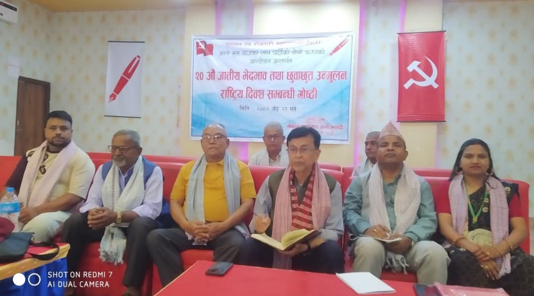 जातीय भेदभाव तथा छुवाछुत उन्मुलनको २० औँ राष्ट्रिय दिवसको अवसरमा वीरगञ्जस्थित क्लासिक बैंक्वेटमा आयोजित विशेष गोष्ठी सम्पन्न भएको छ। उक्त कार्यक्रम नेकपा (एकीकृत समाजवादी) का वरिष्ठ उपाध्यक्ष राजेन्द्र पाण्डेको प्रमुख आतिथ्यमा सम्पन्न भएको हो।