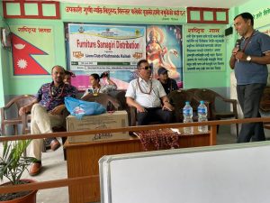 क्लबद्वारा विद्यालयको प्राङ्गणमा एक कार्यक्रमको आयोजना गरि २७ सेट डेस्क–बेन्च सहित ३ थान चकबोार्ड हस्तान्तरण गरिएको थियो । कार्यक्रमको दौरान लायन्स परिवारको तर्फबाट विद्यार्थीहरूको शैक्षिक अनुभूतिलाई अझ सुविधासंपन्न बनाउन, आत्मबल अभिवृद्धि गराउन अनि सुसंस्कार सहितको शिक्षा प्रदान हुन मद्दत पुग्ने विश्वास व्यक्त गरियो ।