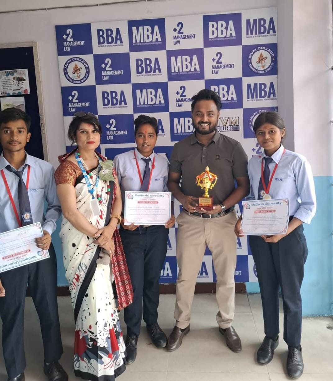 वीरगञ्जस्थित ममता बिधा मन्दिर (MVM) कलेजले मधेश विश्वविद्यालय द्वारा आयोजित कानुनी हाजिरीजवाफ प्रतियोगिता (Legal Quiz Competition 2082) मा दोस्रो स्थान हासिल गर्न सफल भएको छ।