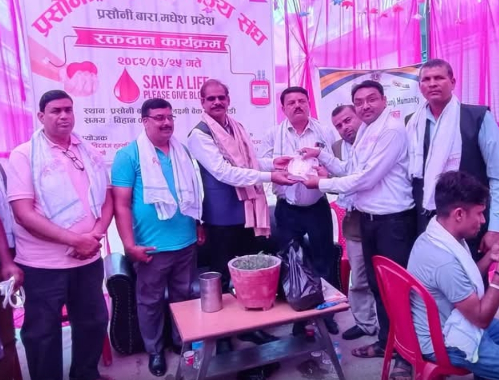 प्रसौनी उद्योग वाणिज्य संघ, बारा सहित विभिन्न सहयोगी संस्थाहरूको संयुक्त आयोजनामा तथा भारतीय महावाणिज्य दूतावास, वीरगंजका डि.एस. मिन्नाको प्रमुख आतिथ्यमा एक भव्य खुल्ला रक्तदान कार्यक्रम सम्पन्न भएको छ।