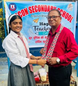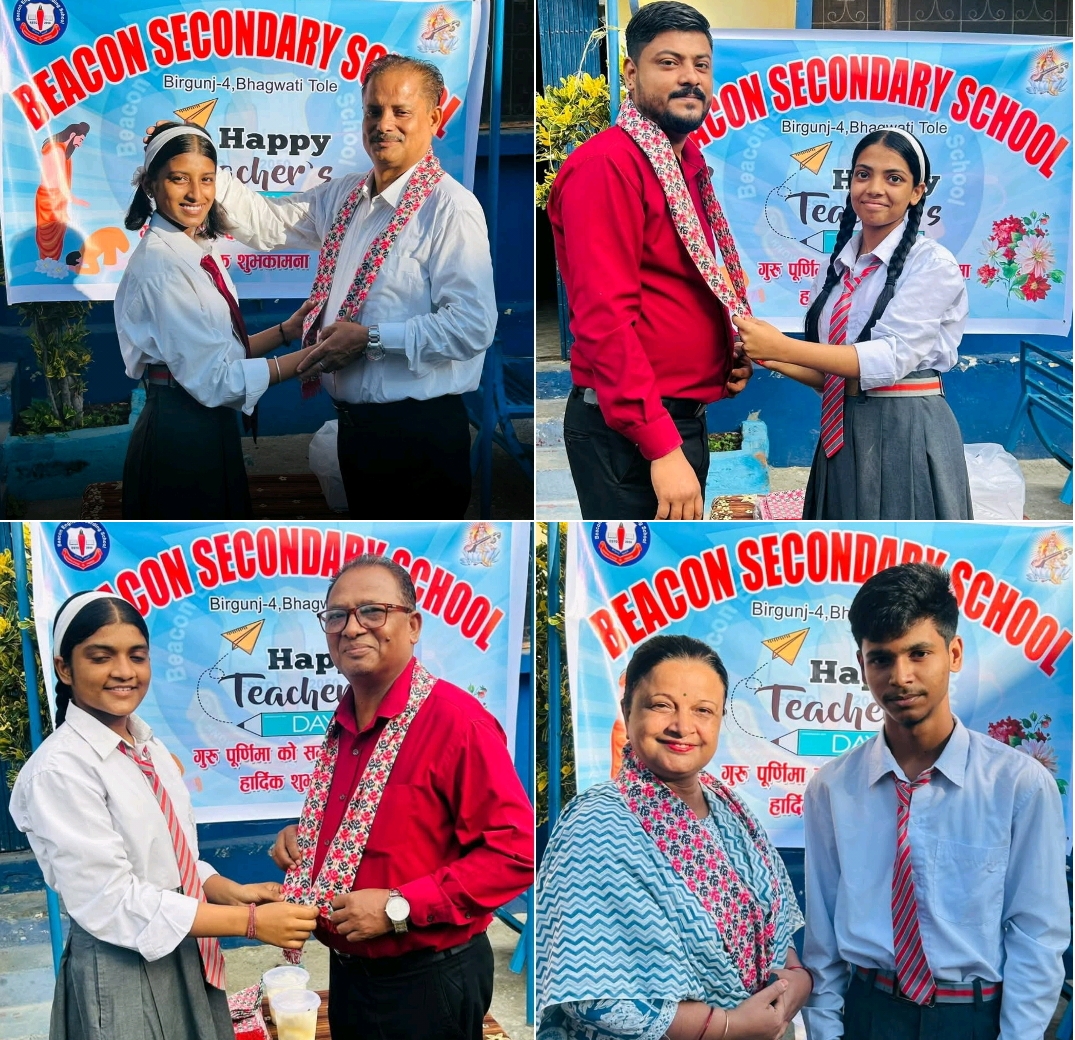 बिरगंज महानगरपालिका–भगवती टोलमा अवस्थित बिकन माध्यमिक विद्यालय मा आज गुरु पूर्णिमा तथा शिक्षक दिवस विशेष रूपमा मनाइएको छ। कक्षा ८, ९ र १० का बिद्यार्थीहरूले आफ्ना शिक्षकमाथि श्रद्धा, आदर र कृतज्ञता प्रकट गर्दै, टिका–खादा लगाएर सम्मान गरेका छन्।