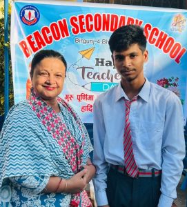 “पुस्तक मात्र होइन, हृदयबाट पढाउने शिक्षकहरूलाई हाम्रो शत–शत नमन !”शिक्षक दिवसको यस पावन अवसरमा बिकन परिवारको तर्फबाट स्कुलका संचालक प्रकाश उपाध्याय द्वारा सम्पूर्ण शिक्षकमण्डललाई हार्दिक शुभकामना ब्यक्त गरेका थिए।