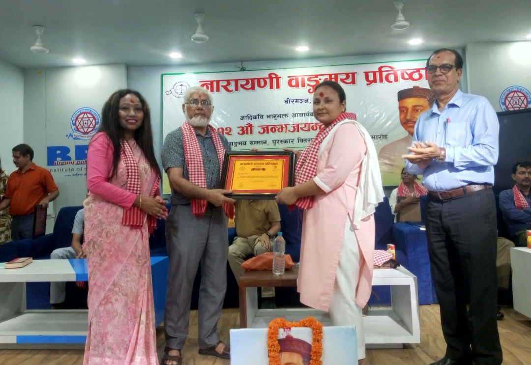 नारायणी वाङ्गमय प्रतिष्ठान, वीरगञ्ज पर्साको आयोजनामा आदिकवि भानुभक्त आचार्यको २१२ औं जन्मजयन्ती विविध साहित्यिक कार्यक्रमका साथ भव्यताका साथ सम्पन्न गरिएको छ।