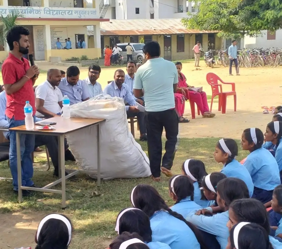 विद्यालय परिसरमै सम्पन्न कार्यक्रममा गाउँपालिकाका अध्यक्ष यशवन्त यादवले विद्यालयका छात्राहरुलाई विद्यालयको तर्फबाट ब्याग वितरण गरेका थिए।