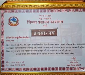 पर्साको दुर्गम ठोरी गाउँपालिकाको सिकारीबासमा सरकारी सेवा विस्तारको आवश्यकतालाई उजागर गर्ने सरोकारवाला लाई जिल्ला प्रशासन कार्यालय, पर्साले आइतबार विशेष सम्मान गरेको छ।