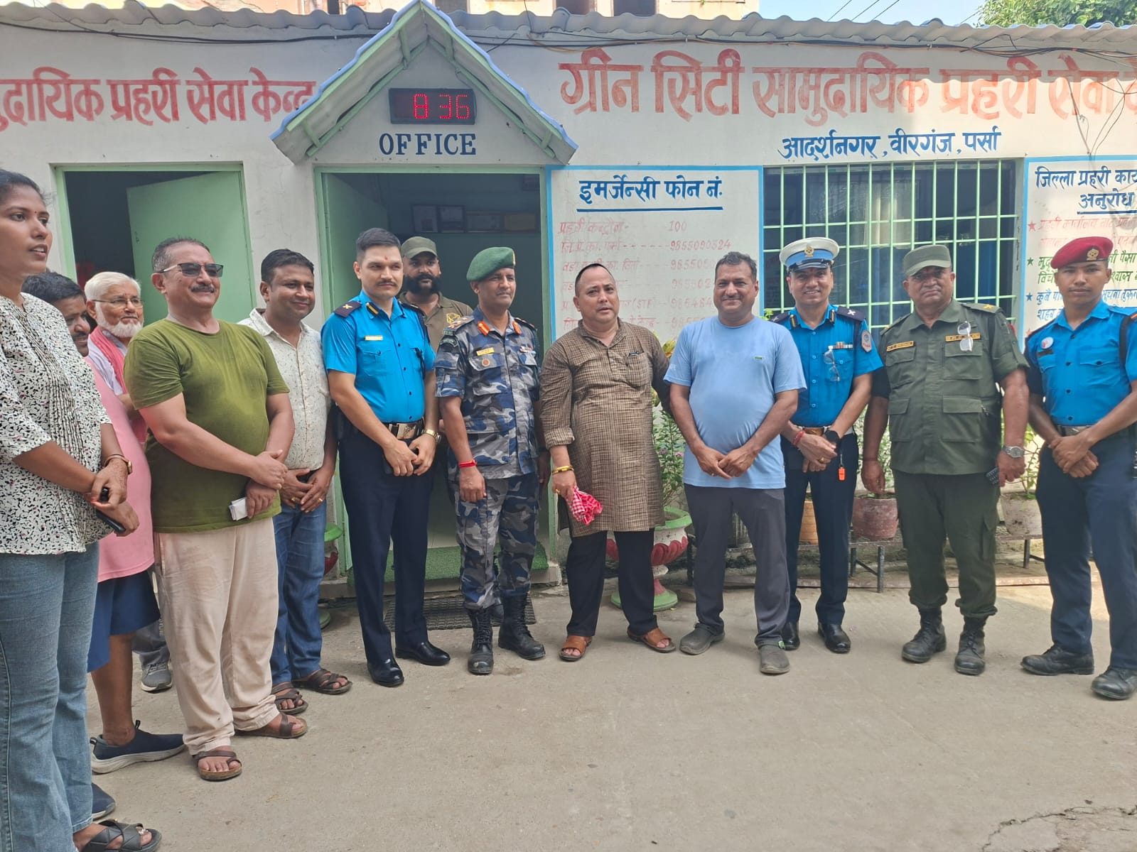 प्रहरी बरिष्ठ हवल्दार प्रेम राम, प्रहरी सहायक हवल्दार अजिता घिमीरे, प्रहरी जवान अमर सिंह साउद, ग्रीन सिटी सामुदायिक प्रहरी सेवा केन्द्र, आदर्शनगर