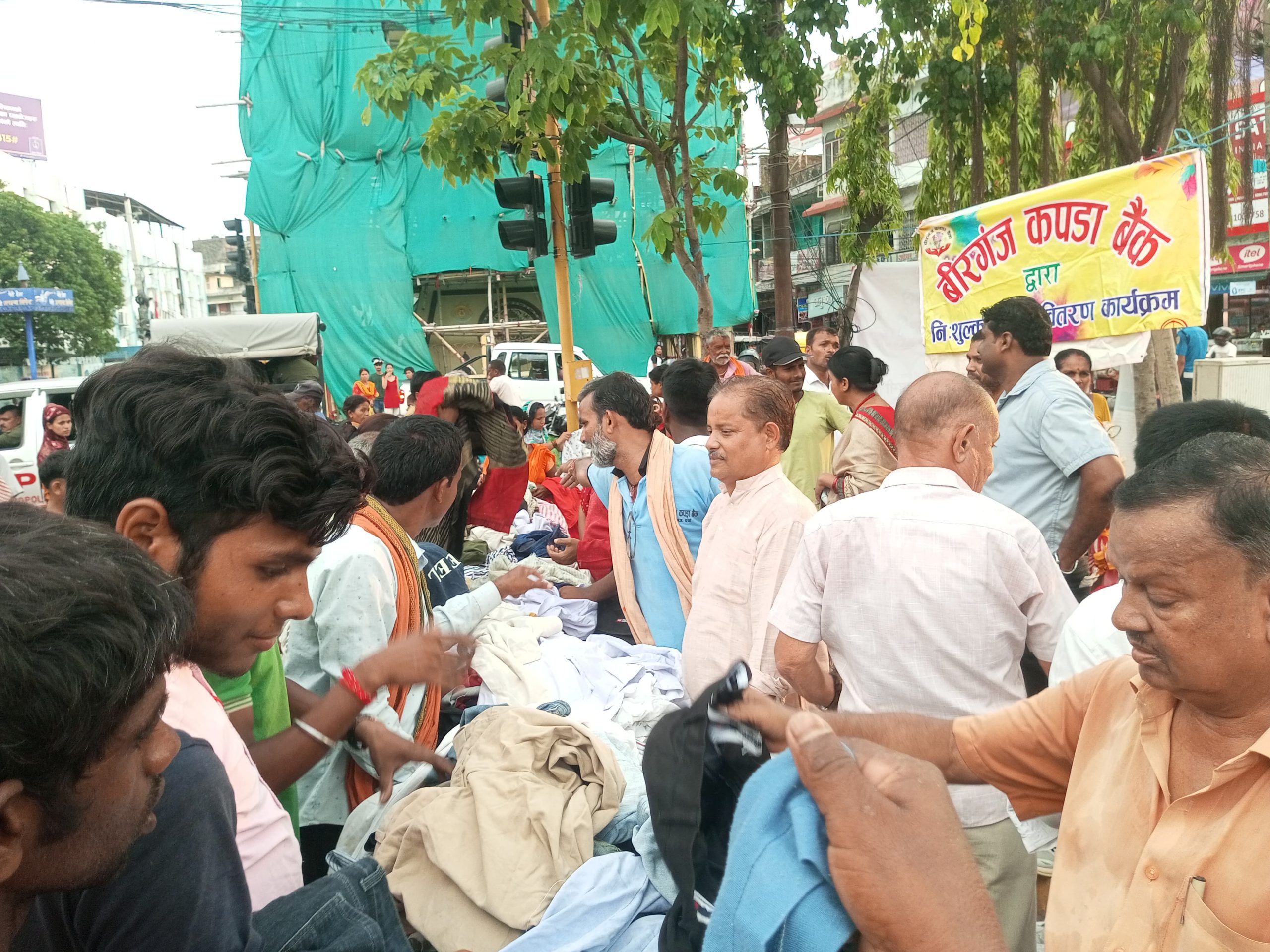 गरीब तथा असहाय वर्गलाई लक्षित गर्दै वीरगंज कपडा बैंकले शुक्रबार वीरगंजको घण्टाघरमा नि:शुल्क कपडा वितरण कार्यक्रम सम्पन्न गरेको छ। बैंकले नया तथा पुराना गरी करिब ६०० थान कपडा वितरण गरेको हो।