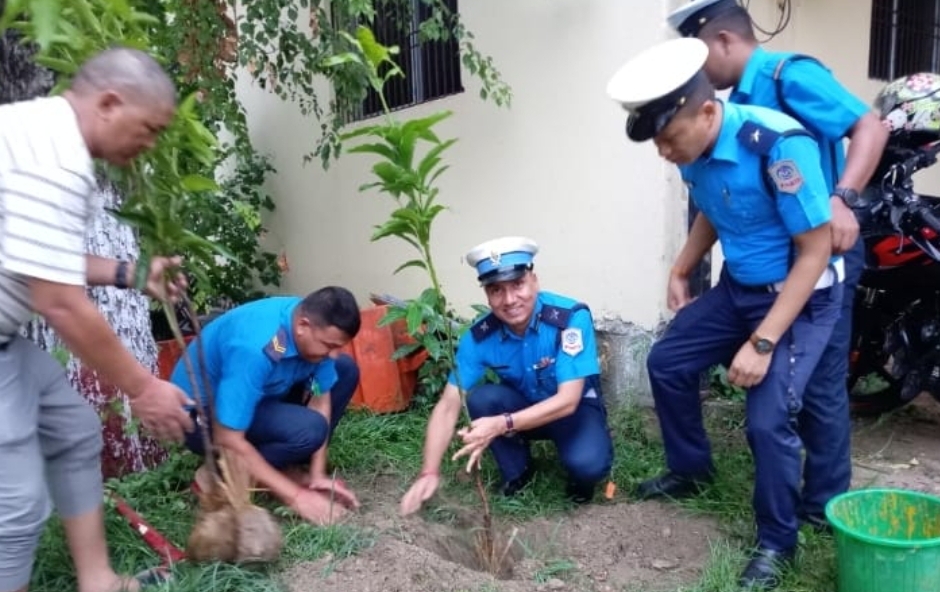 पर्सा जिल्लाको ट्राफिक प्रहरी कार्यालय परिसरमा वातावरण संरक्षण र सौन्दर्यकरणको उद्देश्यले वृक्षारोपण कार्यक्रम सम्पन्न भएको छ। कार्यक्रम अन्तर्गत ट्राफिक प्रहरी कार्यालयका प्रमुख ट्राफिक प्रहरी निरीक्षक (इन्स्पेक्टर) लोकराज भट्टको अगुवाइमा कार्यालयको हाताभित्र विभिन्न प्रजातिका फलफूलका विरुवाहरू रोपिएका छन्।