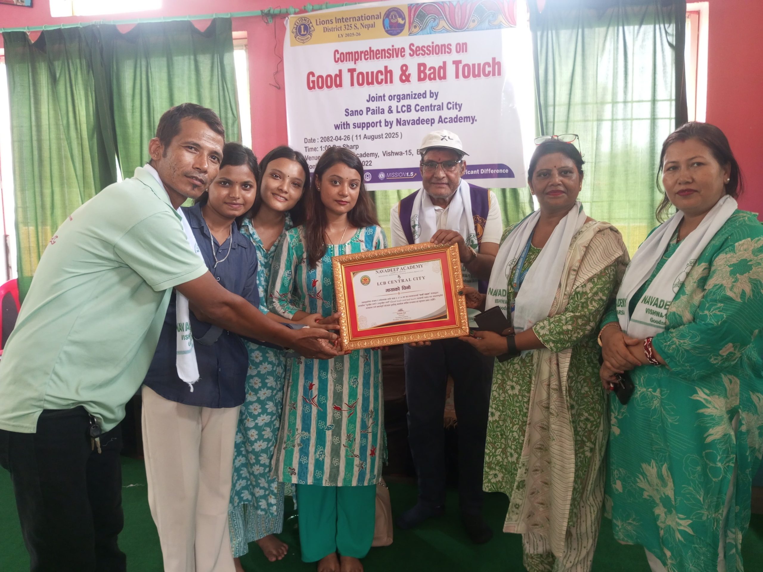 सानो पाइला संस्था र लायन्स क्लब अफ वीरगञ्ज सेन्ट्रल सिटीको संयुक्त आयोजनामा तथा नवदीप एकेडेमीको सहयोगमा “सुरक्षित स्पर्श” र “असुरक्षित स्पर्श” विषयक प्रशिक्षण कार्यक्रम सम्पन्न भएको छ।