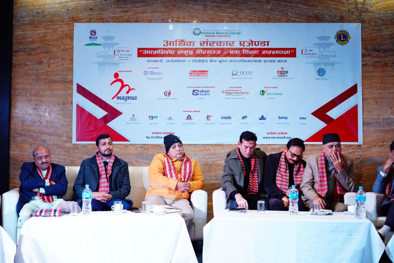 कार्यक्रममा उद्योगी अशोक वैद्य, नेपाल चिकित्सक संघका केन्द्रीय उपाध्यक्ष डा. निरज कुमार सिंह, रेडियो वीरगंजका कार्यकारी अध्यक्ष ध्रुव साह, अर्थविद् डा. दिपेन्द्र कुमार चौधरी, नेपाल राष्ट्र बैंक वीरगंजका निर्देशक सुशिल पौडेल, पर्सा जिल्ला अदालत बार एसोसिएशनका अध्यक्ष रामनारायण कुर्मी लगायतले आ–आफ्नो धारणा राखेका थिए।