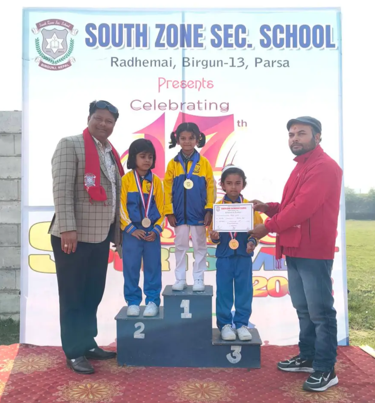 वीरगंज महानगरपालिका वडा नं. १३ राधे माईस्थित साउथजोन माध्यमिक विद्यालयको १७औँ स्थापना दिवसको अवसरमा आयोजना गरिएको सप्ताव्यापी कार्यक्रम अन्तर्गत आज नर्सरीदेखि कक्षा २ सम्मका विद्यार्थीहरूका लागि जुनियर खेलकुद कार्यक्रम उत्साहपूर्ण वातावरणमा सम्पन्न भएको छ।