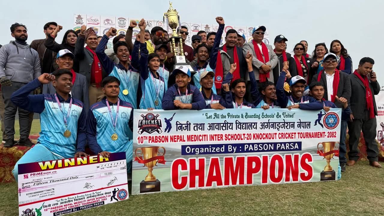 १० औं प्याब्सन नेपाल मेडिसिटी अन्तर विद्यालय टि–२० नकआउट क्रिकेट प्रतियोगिताको उपाधि मुनलाईट माविले उचालेको छ। प्याब्सन पर्साको आयोजनामा गत माघ ८ गतेदेखि शुरु भएको सर्वाधिक ४० विद्यालय सहभागी प्रतियोगिताको शनिबार सम्पन्न फाइनल खेलमा सनलाईट माविलाई ३ विकेटले पराजित गर्दै मुनलाईटले उपाधि उचालेको हो। गत संस्करणको समेत विजेता रहेको मुनलाईटका बलर र ब्याट्सम्यान दुवैको शानदार प्रदर्शनले सनलाईट स्तब्ध बन्यो र उपविजेतामा सीमित रहन पुग्यो।