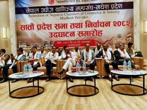 नेपाल उद्योग वाणिज्य महासंघ–मधेश प्रदेशको सातौं प्रदेश सभा तथा निर्वाचन २०८२ को उद्घाटन समारोह जनकपुरमा भव्य रूपमा सम्पन्न भएको छ।कार्यक्रमको उद्घाटन महासंघ मधेश प्रदेशका अध्यक्ष तथा केन्द्रीय कार्यसमिति सदस्य अशोक टेमानी र मधेश प्रदेशका माननीय मुख्यमन्त्री कृष्ण यादवलगायतले संयुक्त रूपमा गमलामा पानी हालेर गरेका थिए।