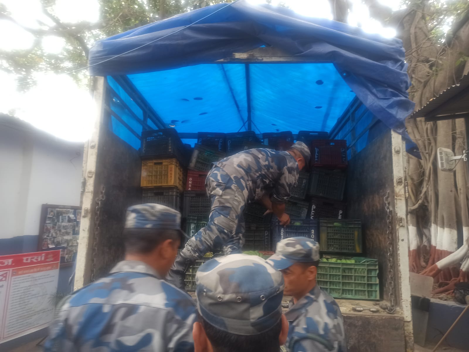 बिरगंज महानगरपालिका–१६ स्थित नगवा फुलवारी टोलस्थित ओम फ्रुट सेन्टर अगाडि भन्सार छली गरी भारतबाट ल्याइएका केरा सहित ट्रक सशस्त्र