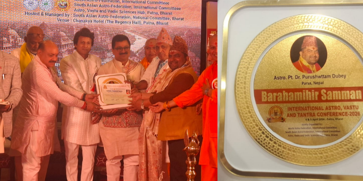 भारतको बिहार राज्यको राजधानी पटना स्थित प्रतिष्ठित चाणक्य होटलमा आयोजित ‘अन्तर्राष्ट्रिय ज्योतिष, वास्तु एवं तन्त्र सम्मेलन–२०२६’ मा नेपालका प्रख्यात