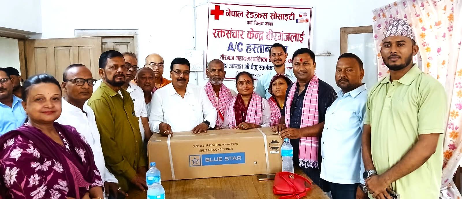 वीरगञ्ज महानगरपालिका वडा नं ३ का वडाअध्यक्ष बैजुलाल स्वर्णकारद्वारा नेपाल रेडक्रस सोसाइटी रक्तसञ्चार केन्द्र वीरगंजमा एसी हस्तान्तरण गरिएको छ