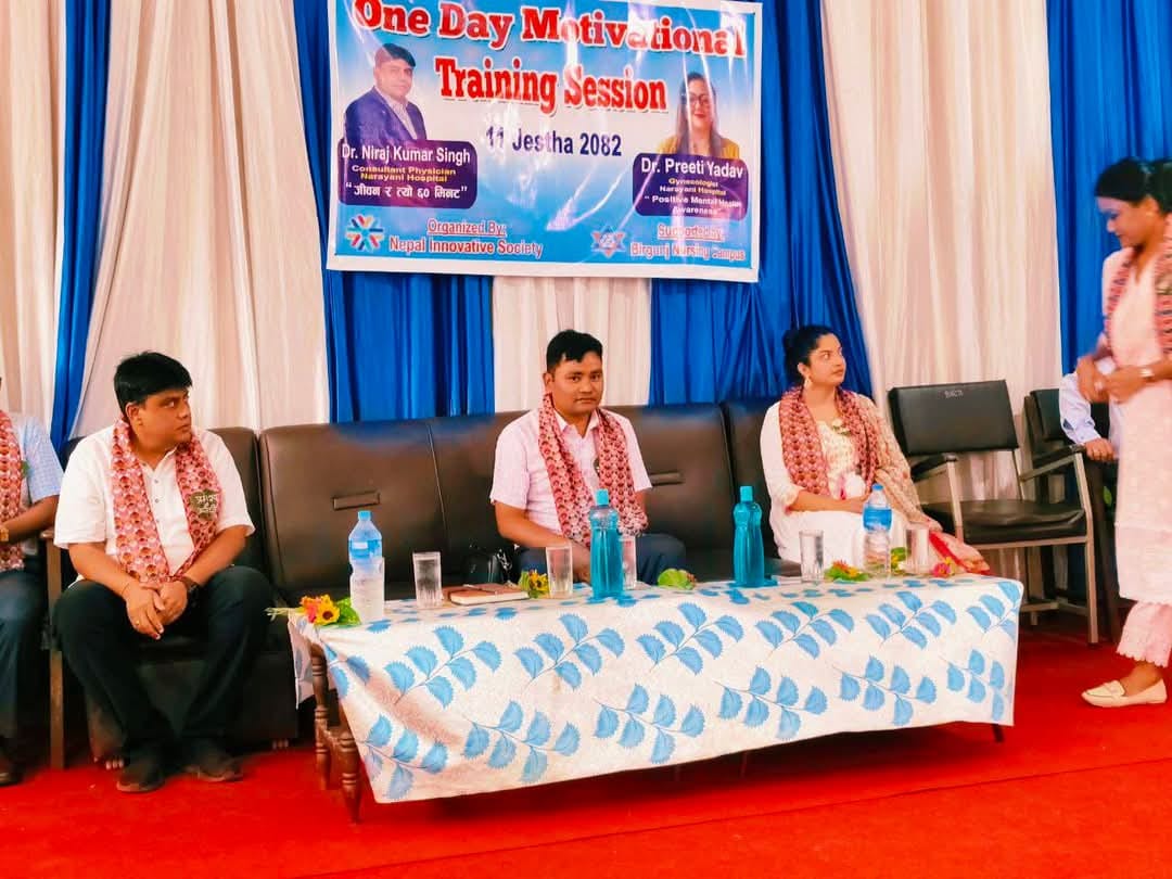 अभिलाष गुप्ता वीरगञ्ज, १२ जेठ नेपाल इनोभेटिभ सोसाइटीको आयोजनामा तथा वीरगञ्ज नर्सिङ क्याम्पसको सहकार्यमा एक दिने मोटिभेसनल तालिम कार्यक्रम