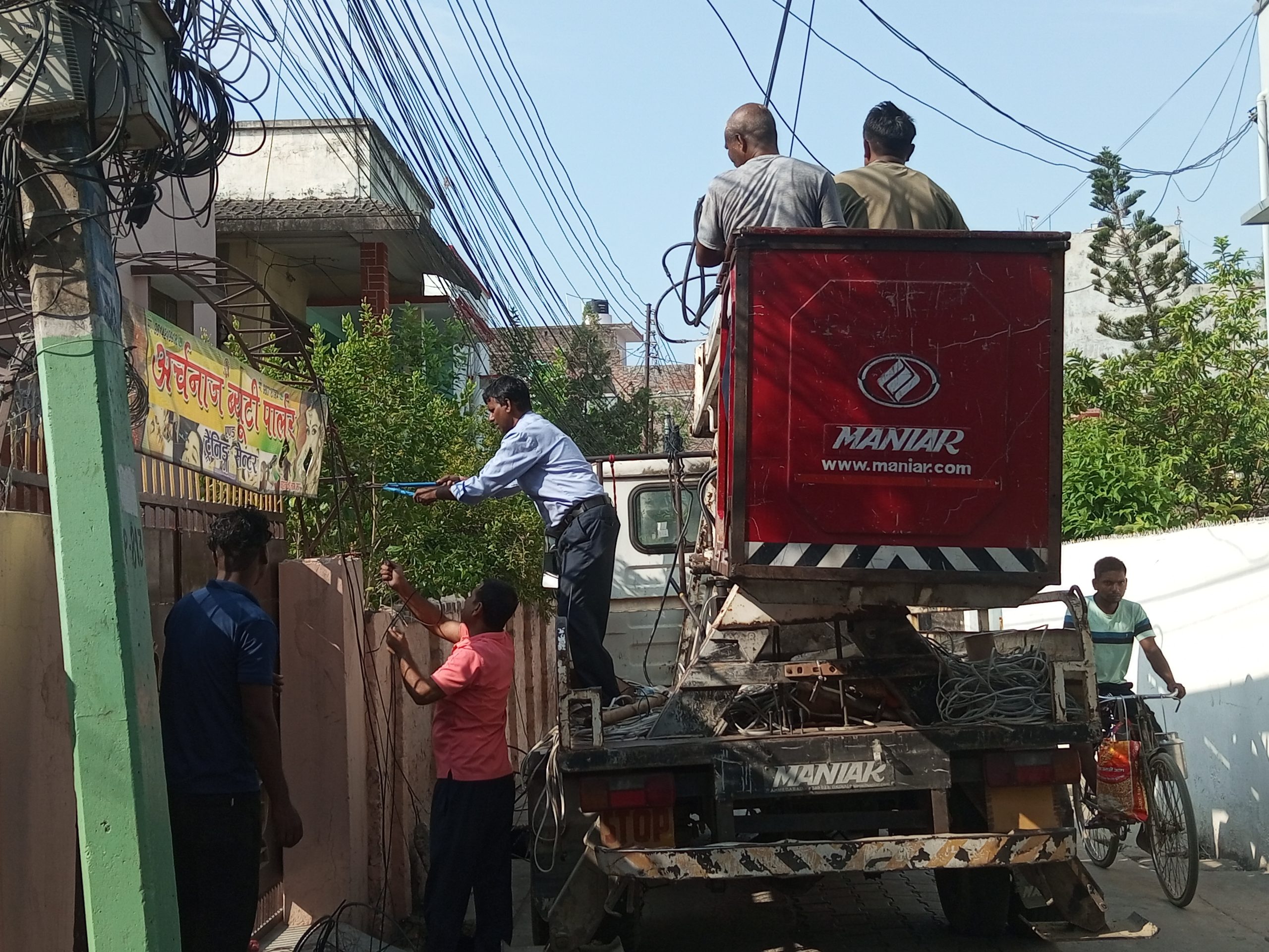 अभिलाष गुप्ता बिरगंज,१२ जेष्ठ बिरगंज महानगरपालिका वडा नम्बर ५ मा सडक किनारमा अव्यवस्थित रूपमा झुण्डिएका इन्टरनेट, केबुल,