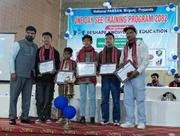 नेशनल प्याब्सन पर्सा, वीरगञ्जको आयोजनामा रिसेप नलेज एजुकेसनको सहकार्यमा वीरगञ्जको नगर सभागृहमा एकदिने एस.इ.ई. ट्रेनिङ–२०८२ कार्यक्रम सम्पन्न भएको छ।