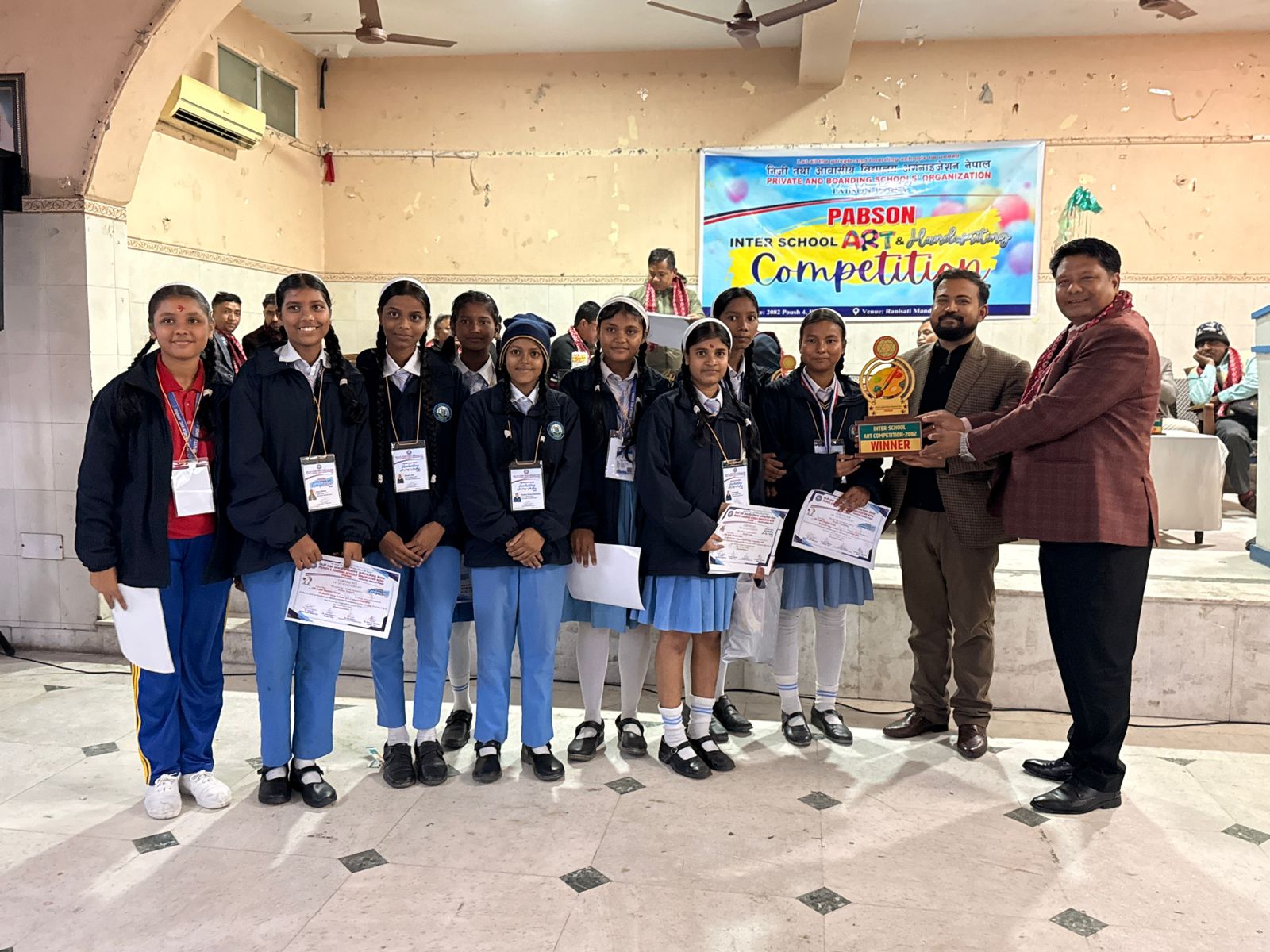 निजी तथा आवासीय विद्यालय अर्गनाइजेसन नेपाल (प्याब्सन) पर्साको आयोजनामा शुक्रबार वीरगञ्जस्थित राणीसती मन्दिर धर्मशालामा अन्तर–विद्यालय आर्ट एन्ड ह्यान्डराइटिङ (कला