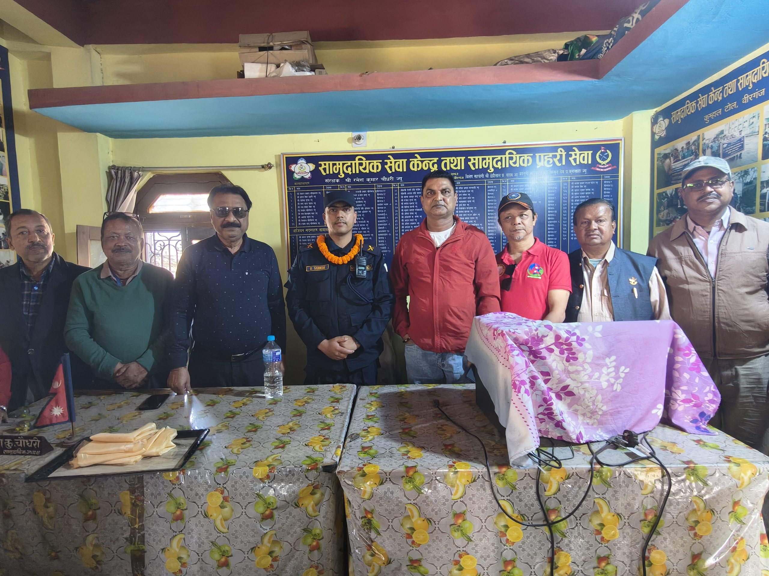 सामुदायिक सेवा केन्द्र तथा सामुदायिक प्रहरी सेवा कुम्हालटोलद्वारा वडा प्रहरी कार्यालय बिर्ताका प्रमुख प्रहरी निरीक्षक बिक्रम सुबेदीसँग कुम्हालटोलस्थित भवनमा