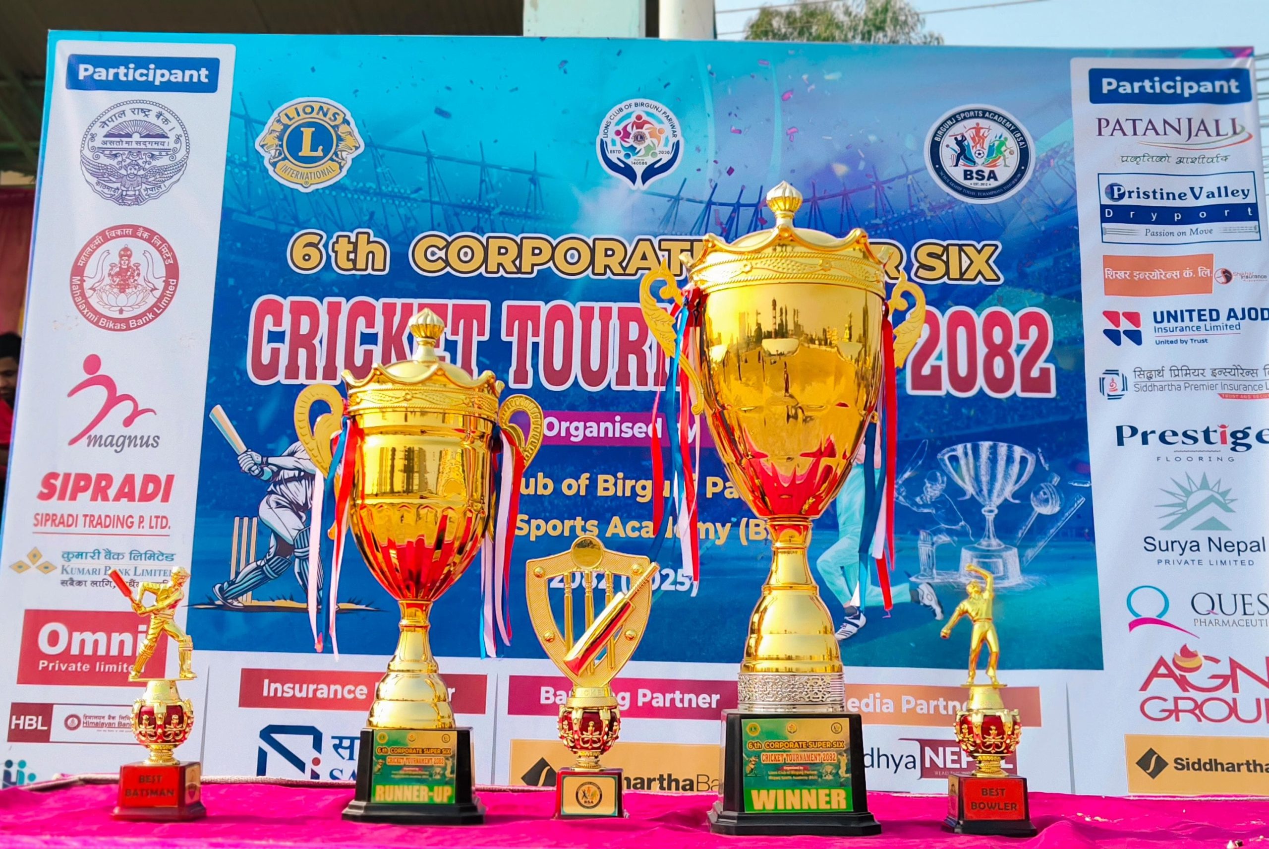 लायन्स क्लब बिरगंज परिवार र बिरगंज स्पोर्ट्स एकाडेमीको संयुक्त आयोजनामा जारी कर्पोरेट सुपर 6 क्रिकेट टुर्नामेन्ट अन्तर्गत आज सम्पन्न