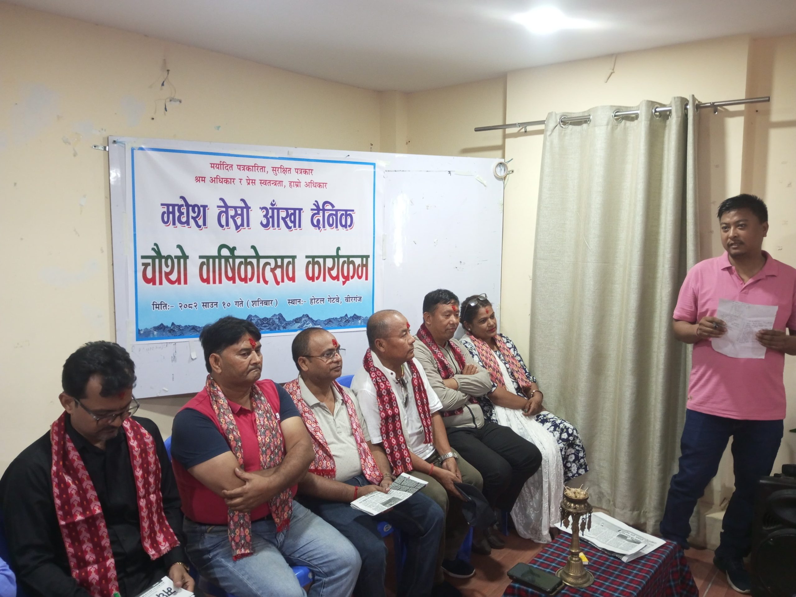 “मर्यादित पत्रकारिता, सुरक्षित पत्रकार श्रम अधिकार र प्रेस स्वतन्त्रता हाम्रो अधिकार” भन्ने नाराका साथ मधेस तेस्रो आखा दैनिक पत्रिकाको