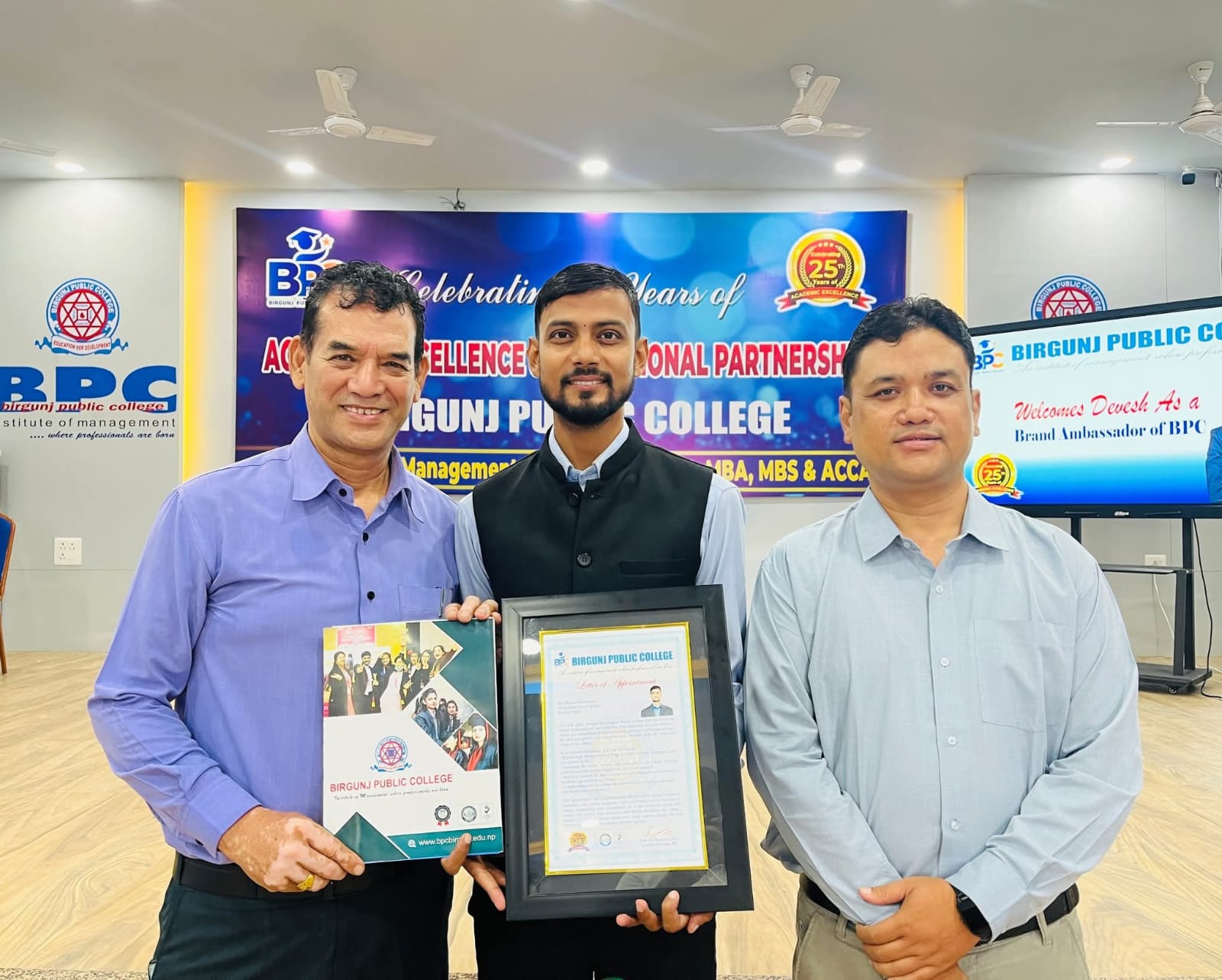 समाजसेवा, शिक्षा र युवा प्रेरणाका क्षेत्रमा सक्रिय तथा लोकप्रिय व्यक्तित्व देवेश प्रसाद मानवसेवालाई बिरगञ्ज पब्लिक कलेजले आफ्नो ब्रान्ड